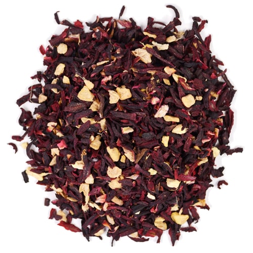 The tart cranberry flavor of hibiscus is complemented by zesty ginger root and the sweet zest of orange peel.